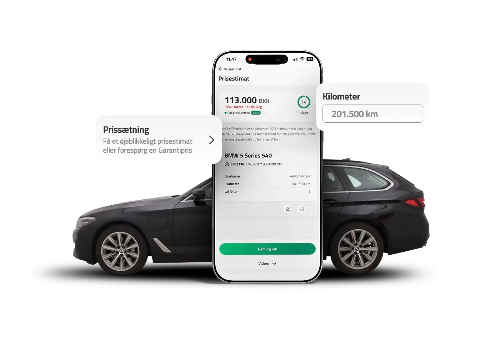 Med AutoProff Estimate tilbyder vi en AI-drevet vurdering – øjeblikkelig, tilgængelig 24/7 og baseret på markedets største engrospris-database.