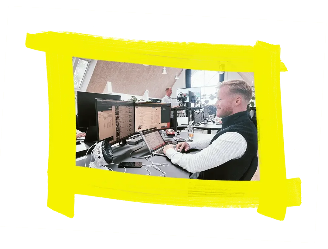 På vores hovedkontor i Vejle finder du vores største Garantipris-team. Det er her vi sørger for, at alt spiller – med både overblik, fart og god stemning.
